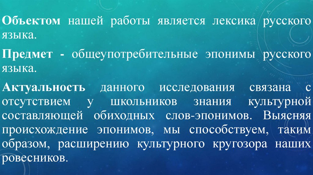 Объектом нашей работы является лексика русскогоязыка.