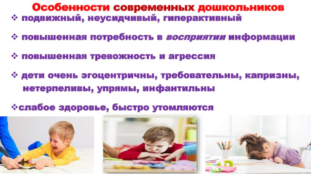 Особенности современных дошкольниковподвижный, неусидчивый, гиперактивный