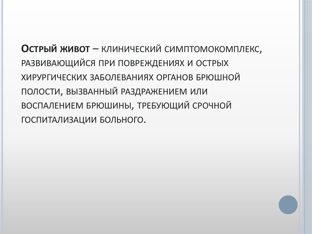 ОСТРЫЙ ЖИВОТ – КЛИНИЧЕСКИЙ СИМПТОМОКОМПЛЕКС,РАЗВИВАЮЩИЙСЯ ПРИ ПОВРЕЖДЕНИЯХ И ОСТРЫХ