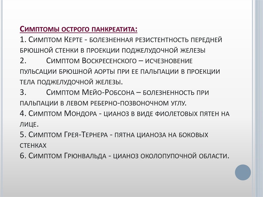 СИМПТОМЫ ОСТРОГО ПАНКРЕАТИТА:1. СИМПТОМ КЕРТЕ - БОЛЕЗНЕННАЯ РЕЗИСТЕНТНОСТЬ ПЕРЕДНЕЙ