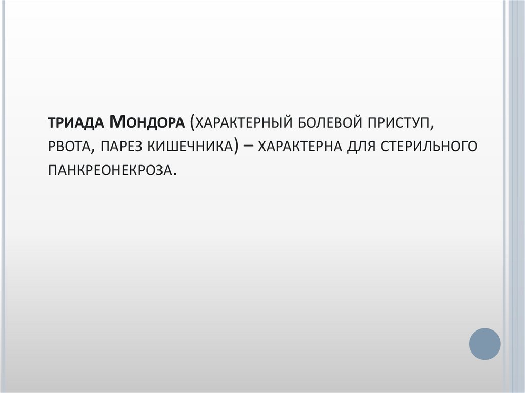 ТРИАДА МОНДОРА (ХАРАКТЕРНЫЙ БОЛЕВОЙ ПРИСТУП,РВОТА, ПАРЕЗ КИШЕЧНИКА) – ХАРАКТЕРНА ДЛЯ СТЕРИЛЬНОГО