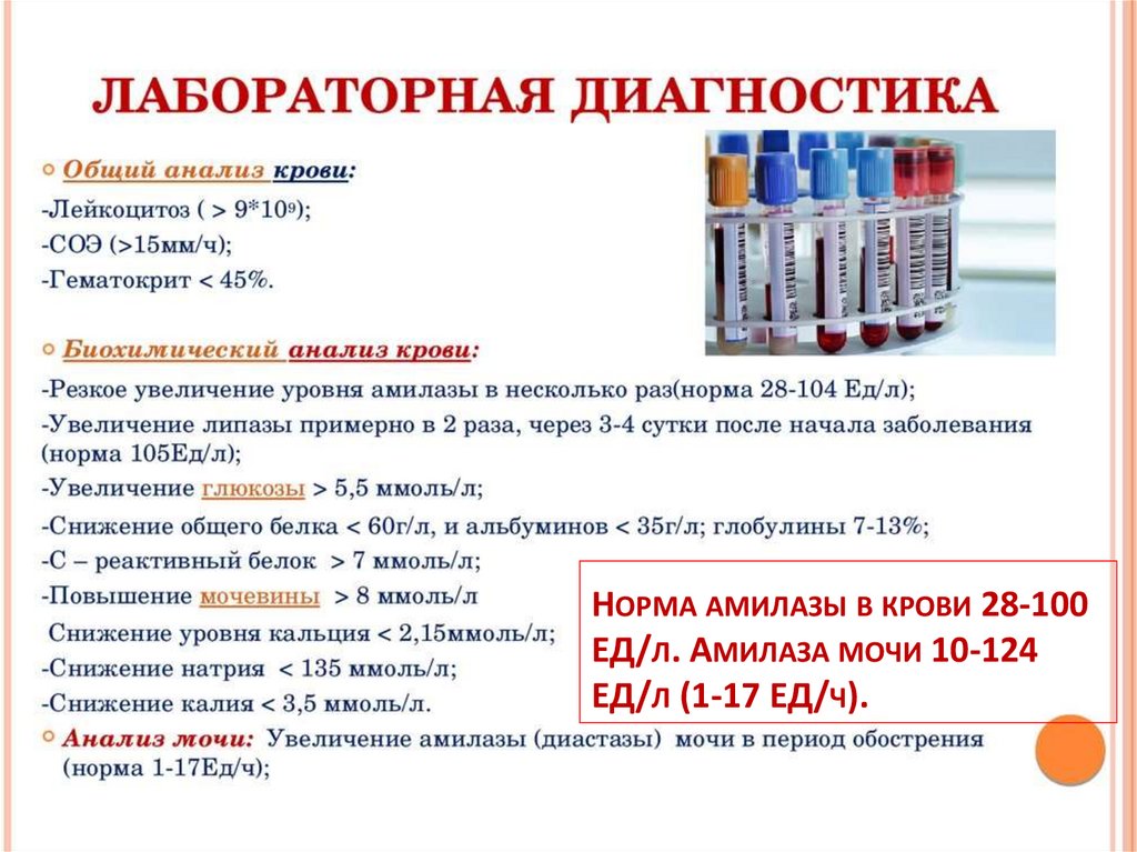 НОРМА АМИЛАЗЫ В КРОВИ 28-100ЕД/Л. АМИЛАЗА МОЧИ 10-124