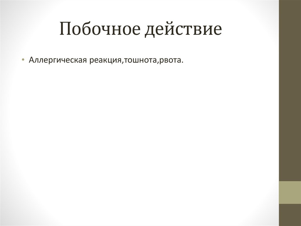 Побочное действие• Аллергическая реакция,тошнота,рвота.