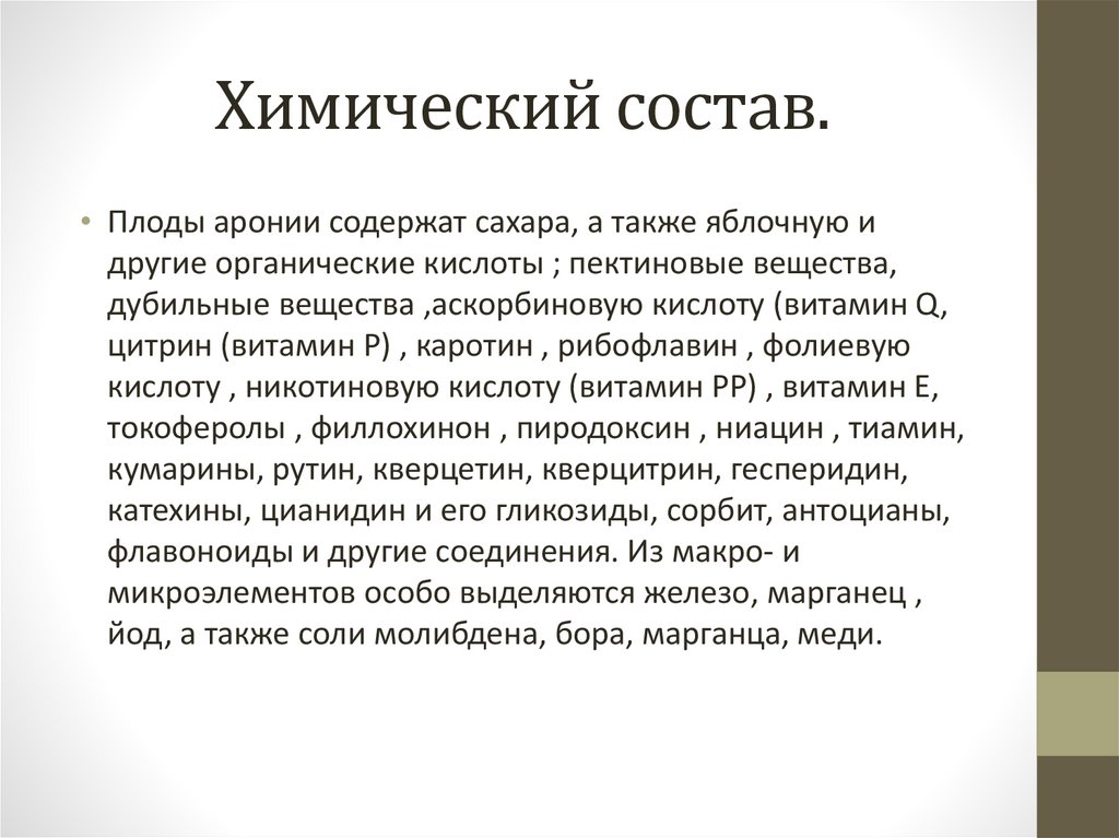 Химический состав.• Плоды аронии содержат сахара, а также яблочную и