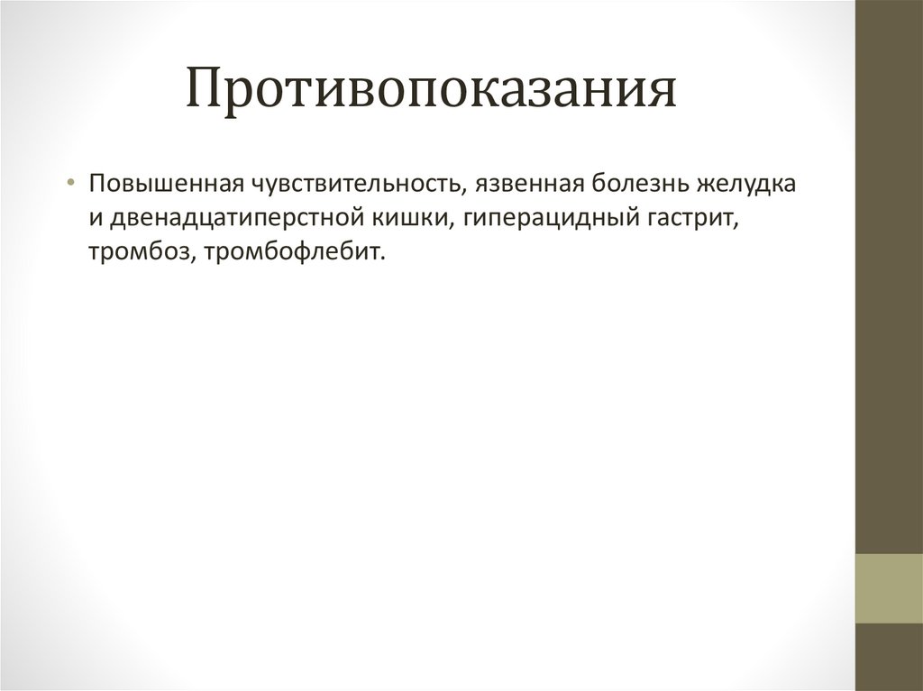 Противопоказания• Повышенная чувствительность, язвенная болезнь желудка