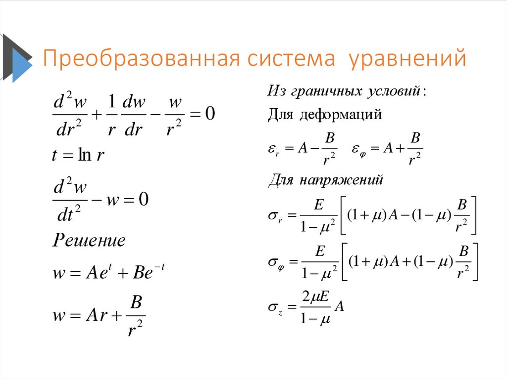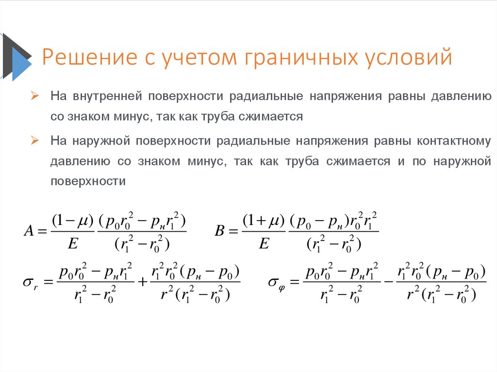 Решение с учетом граничных условийНа внутренней поверхности радиальные напряжения равны давлению