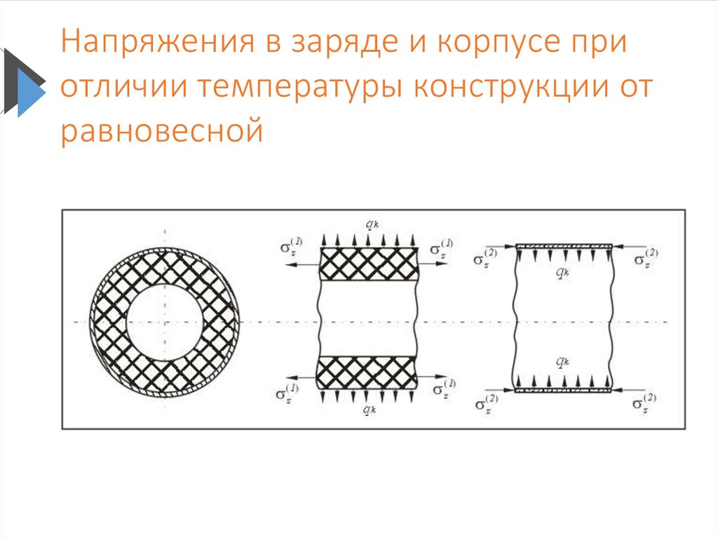 Напряжения в заряде и корпусе приотличии температуры конструкции от