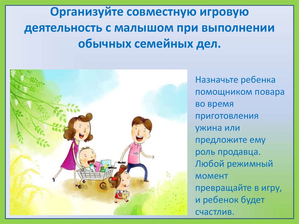 Организуйте совместную игровуюдеятельность с малышом при выполнении