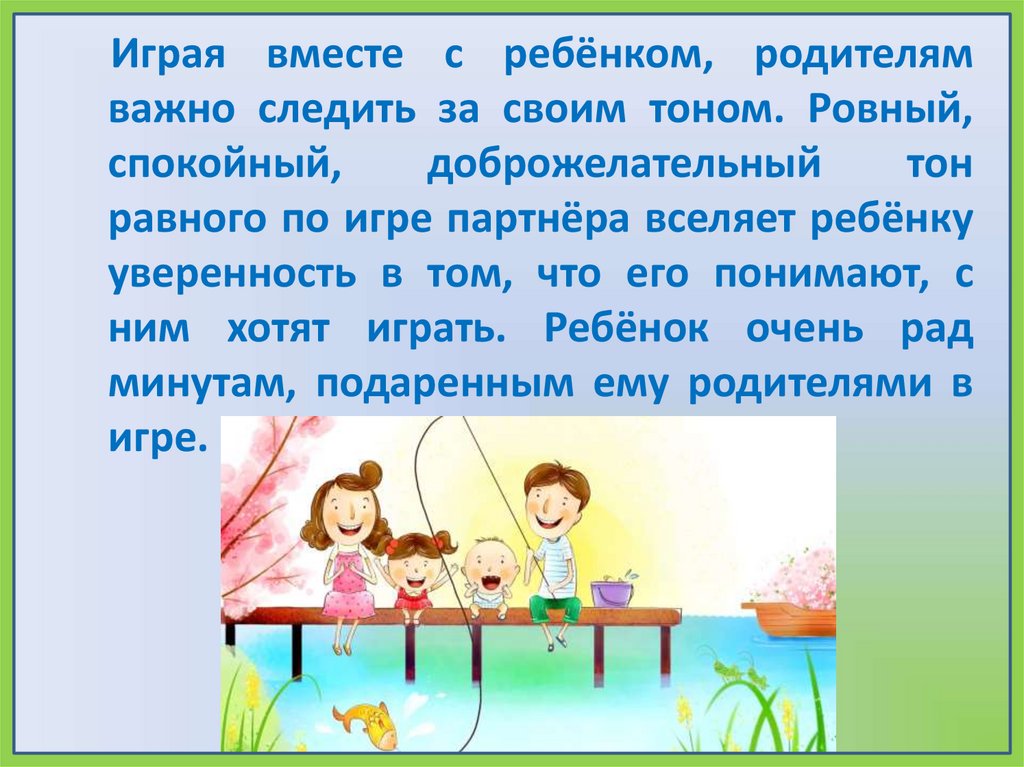 Играя вместе с ребёнком, родителямважно следить за своим тоном. Ровный,