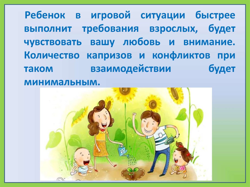 Ребенок в игровой ситуации быстреевыполнит требования взрослых, будет