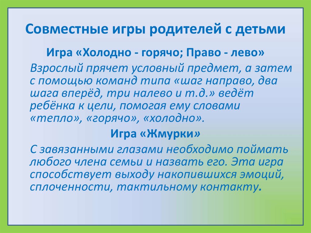 Совместные игры родителей с детьмиИгра «Холодно - горячо; Право - лево»