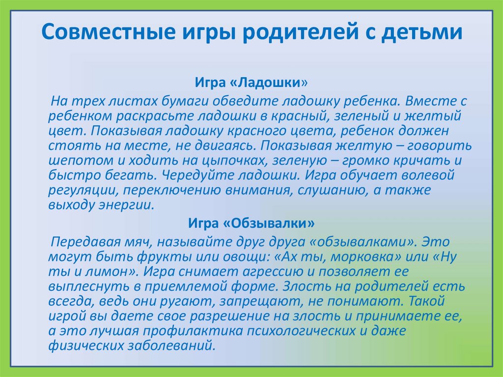 Совместные игры родителей с детьмиИгра «Ладошки»