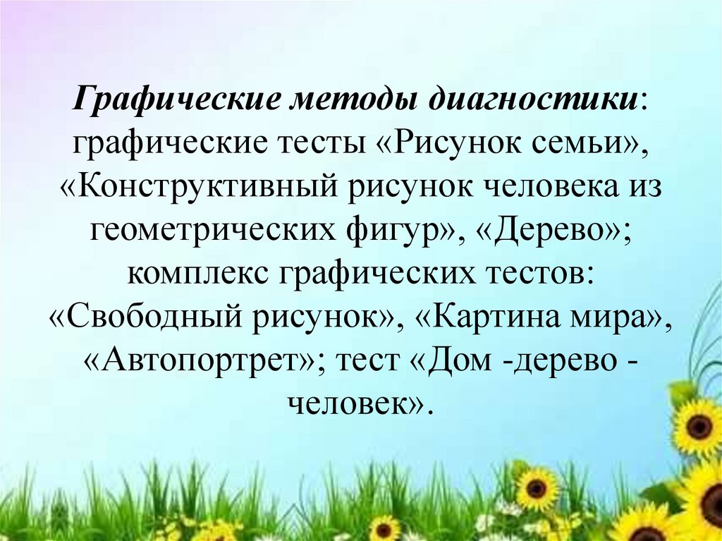 Графические методы диагностики:графические тесты «Рисунок семьи»,