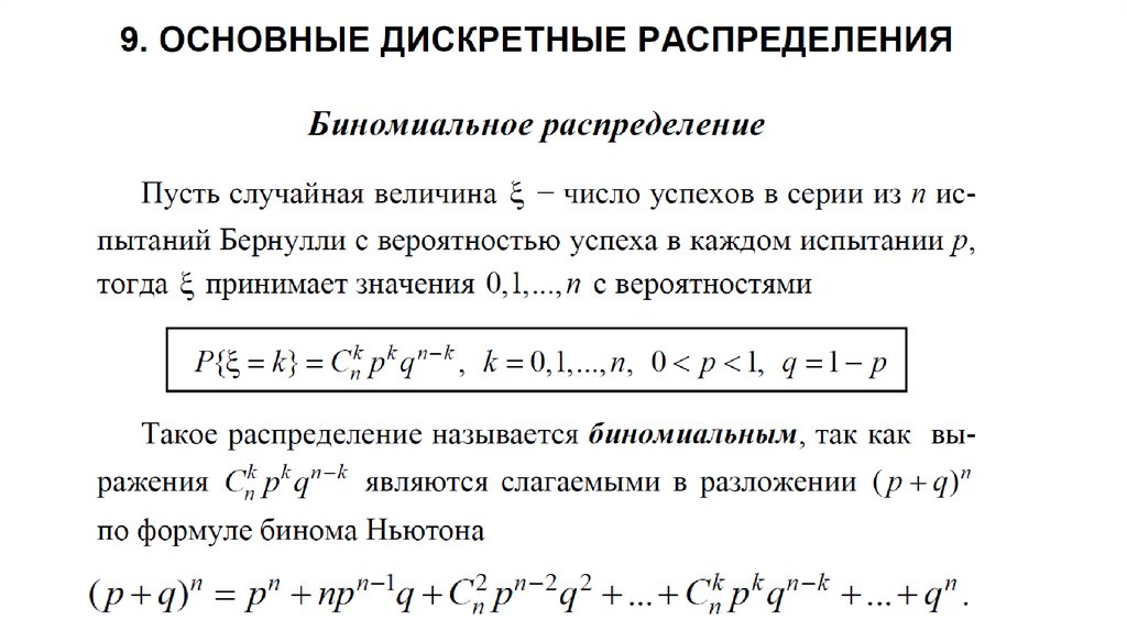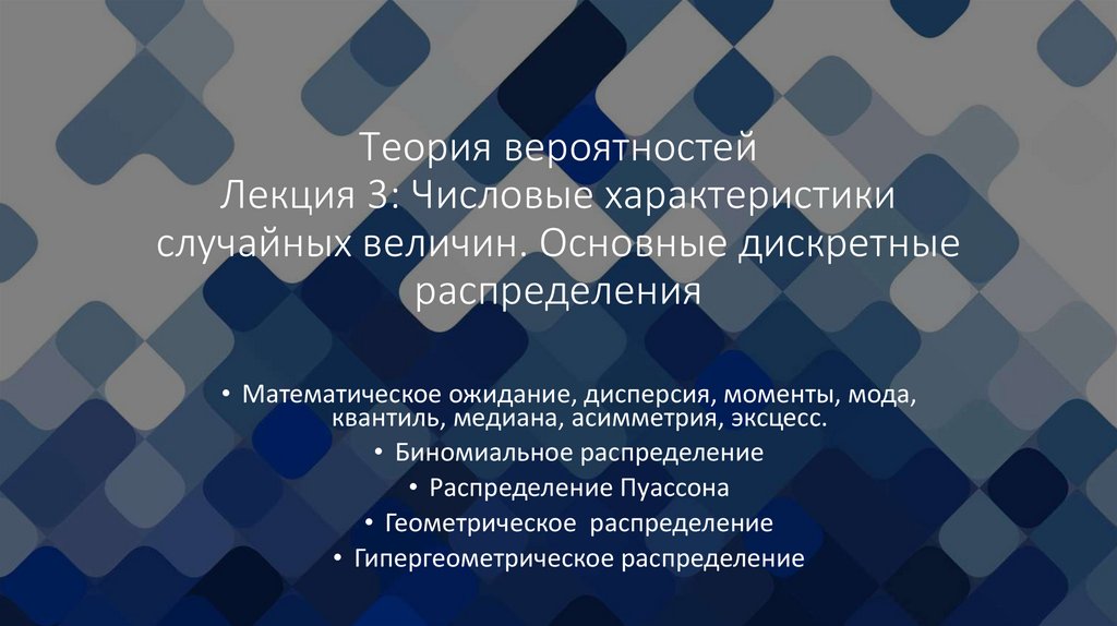 Теория вероятностей. Числовые характеристики случайных величин. Основные дискретные распределения. Лекция 3