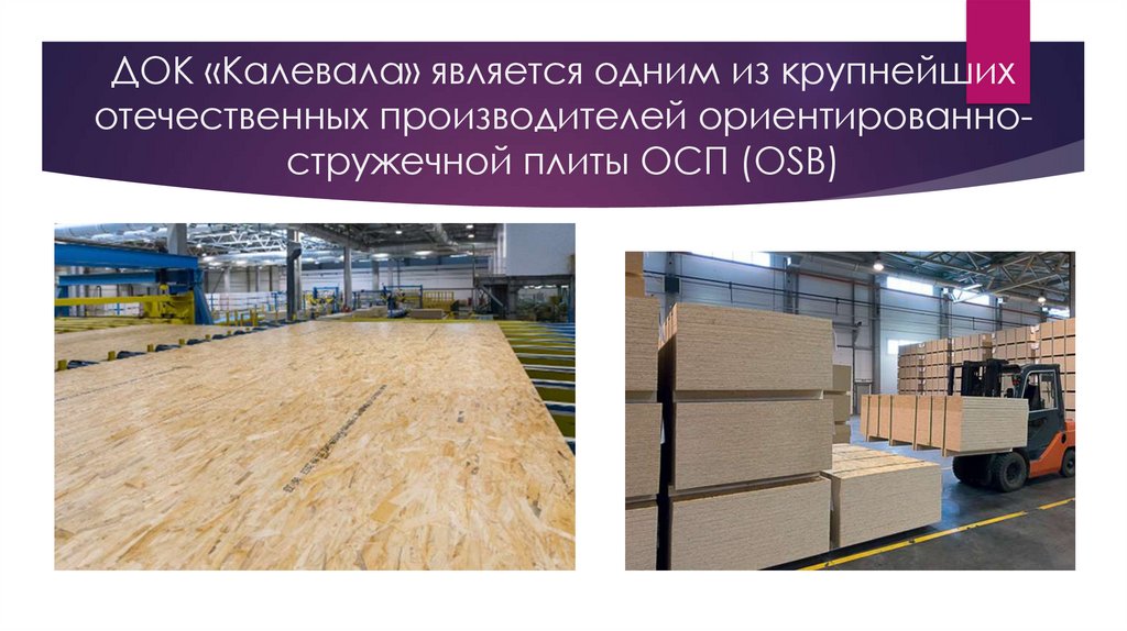 ДОК «Калевала» является одним из крупнейшихотечественных производителей ориентированностружечной плиты ОСП (OSB)