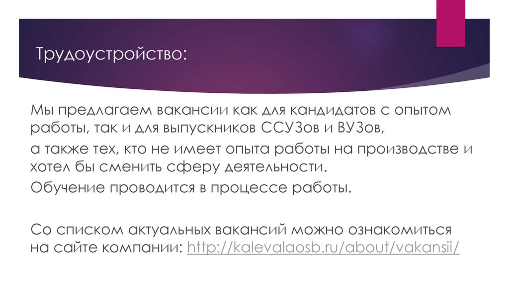 на сайте компании: http://kalevalaosb.ru/about/vakansii/