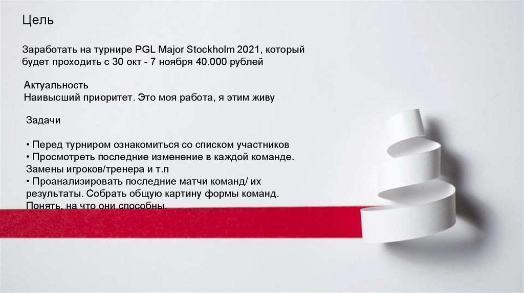ЦельЗаработать на турнире PGL Major Stockholm 2021, который
