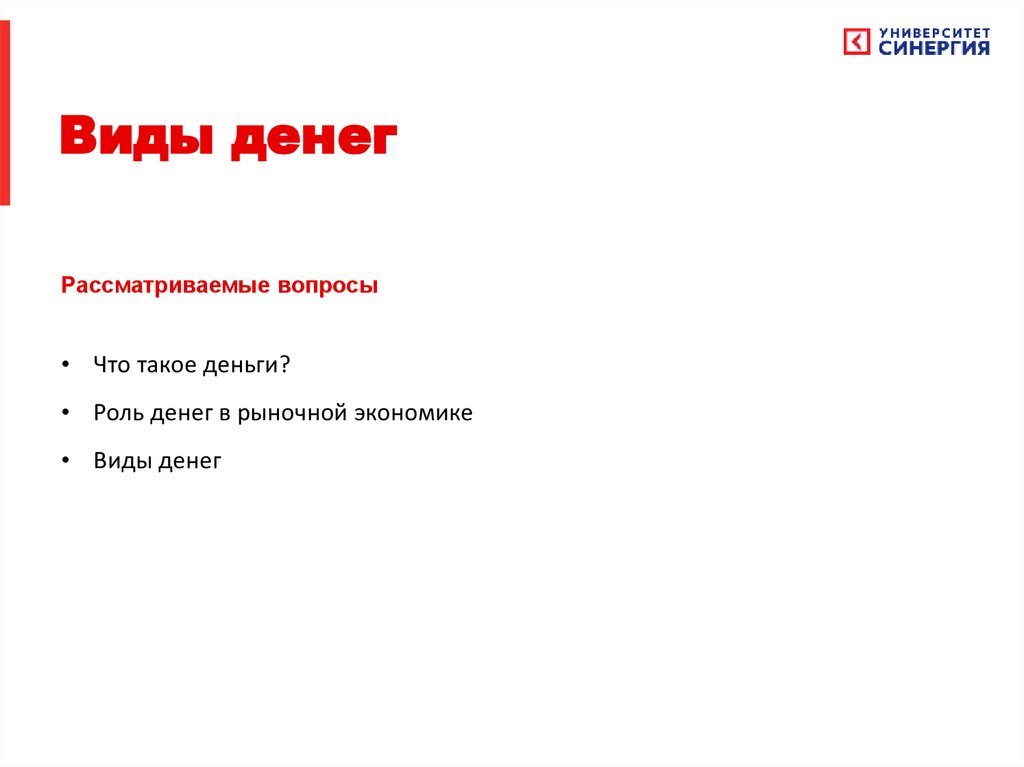 Виды денегРассматриваемые вопросы