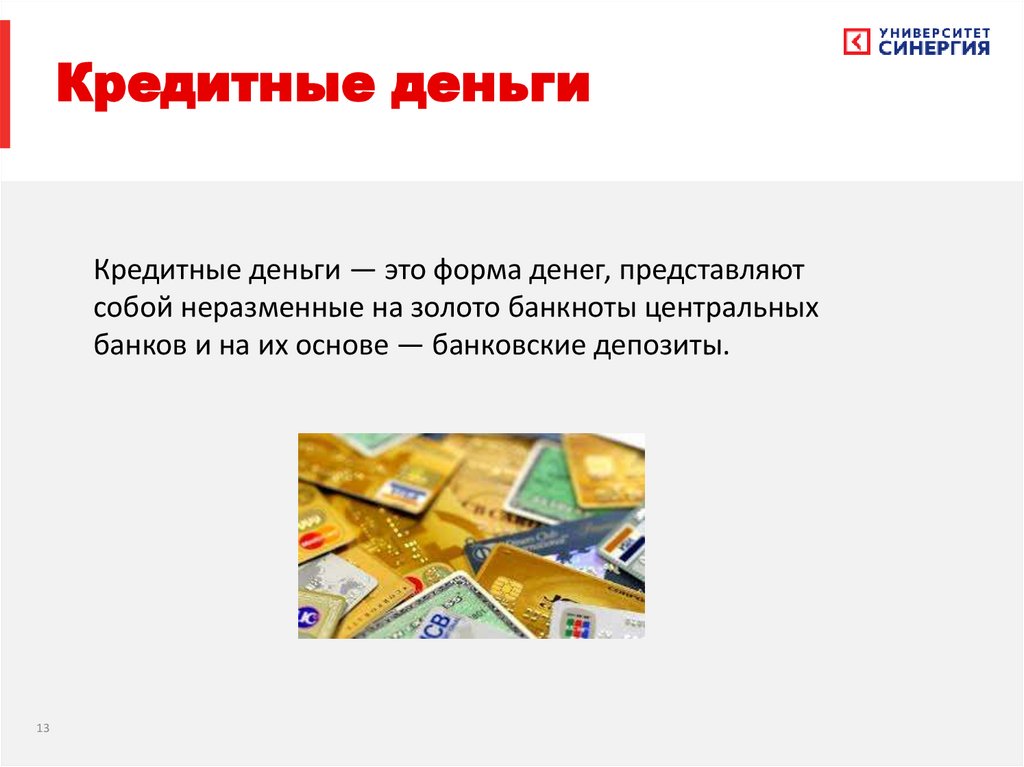 Кредитные деньгиКредитные деньги — это форма денег, представляют