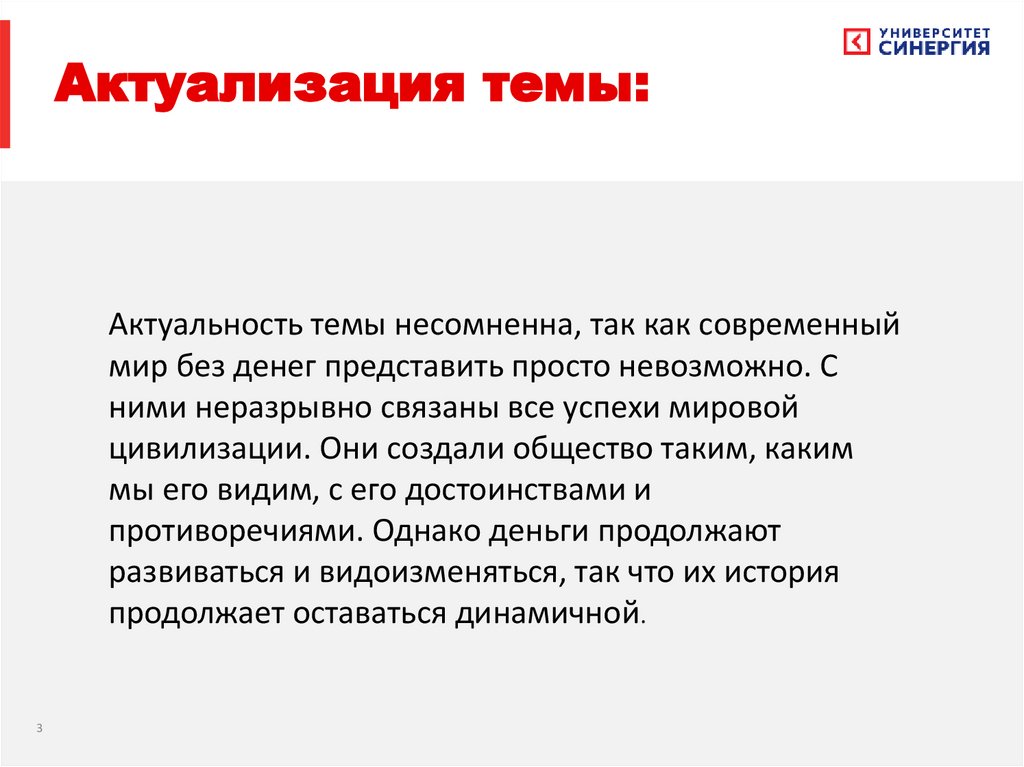 Актуализация темы:Актуальность темы несомненна, так как современный