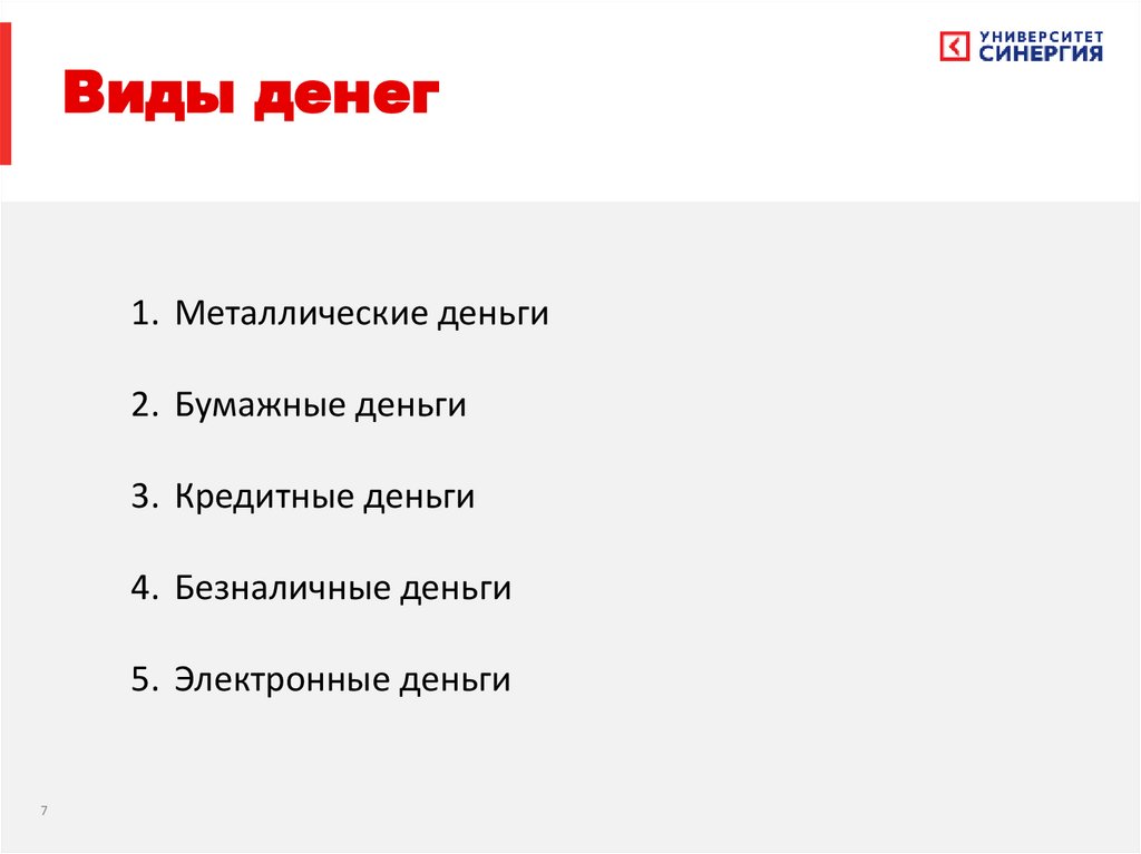 • Виды денег