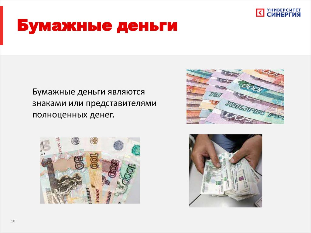 Бумажные деньгиБумажные деньги являются