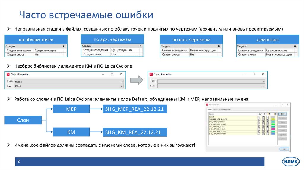 Часто встречаемые ошибкиНеправильная стадия в файлах, созданных по облаку точек и поднятых по чертежам (архивным или вновь проектируемым)