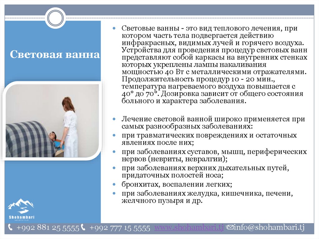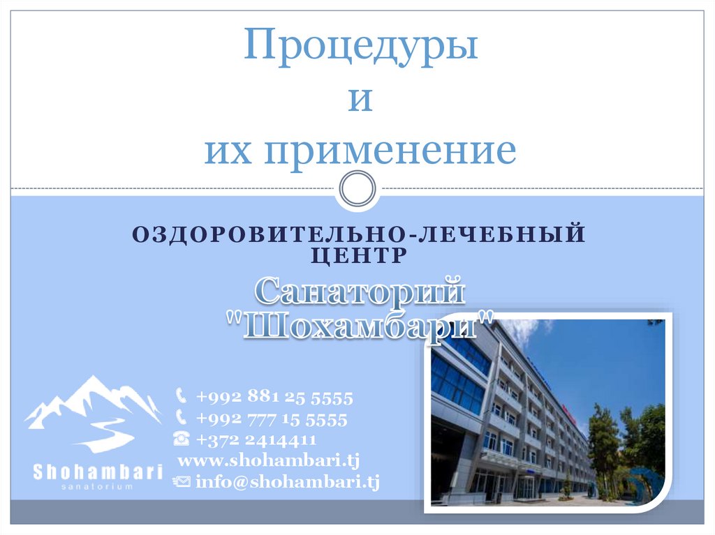 Процедуры и их применение. Оздоровительно-лечебный центр
