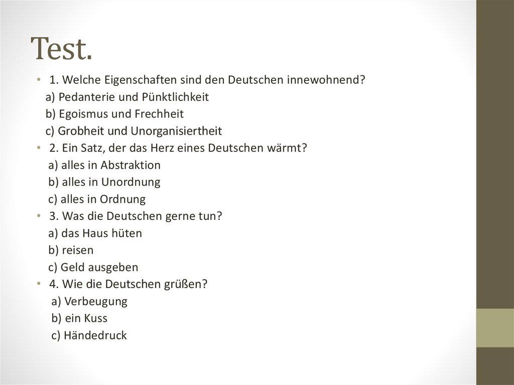 Test.• 1. Welche Eigenschaften sind den Deutschen innewohnend?