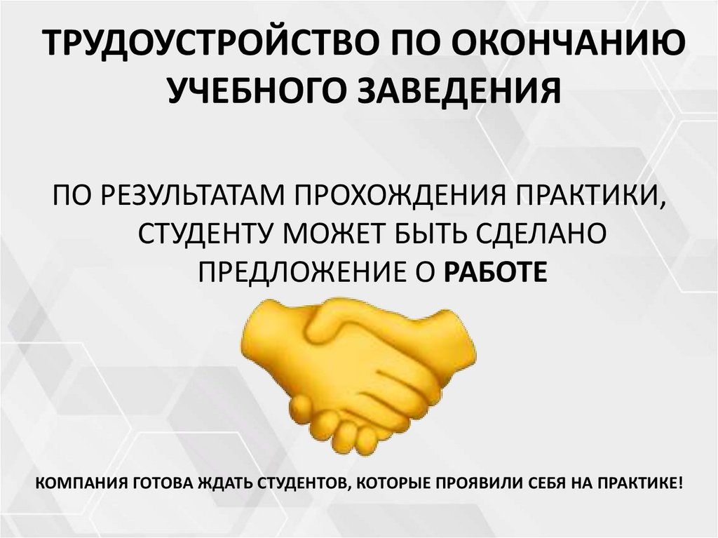 КОМПАНИЯ ГОТОВА ЖДАТЬ СТУДЕНТОВ, КОТОРЫЕ ПРОЯВИЛИ СЕБЯ НА ПРАКТИКЕ!