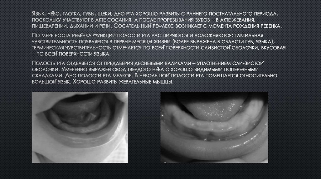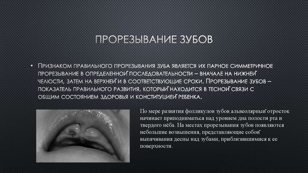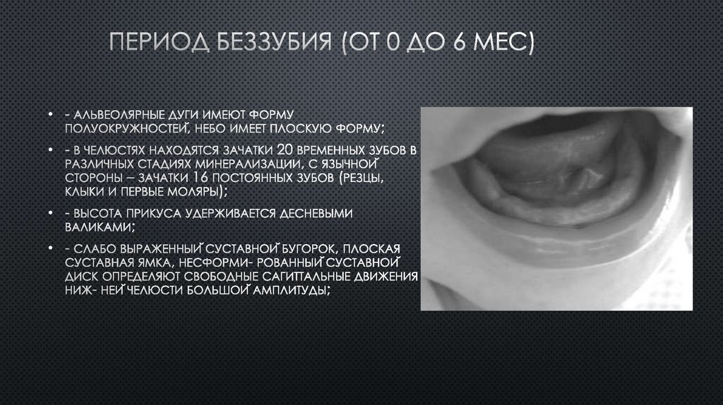 твердого нёба. На местах прорезывания зубов появляются