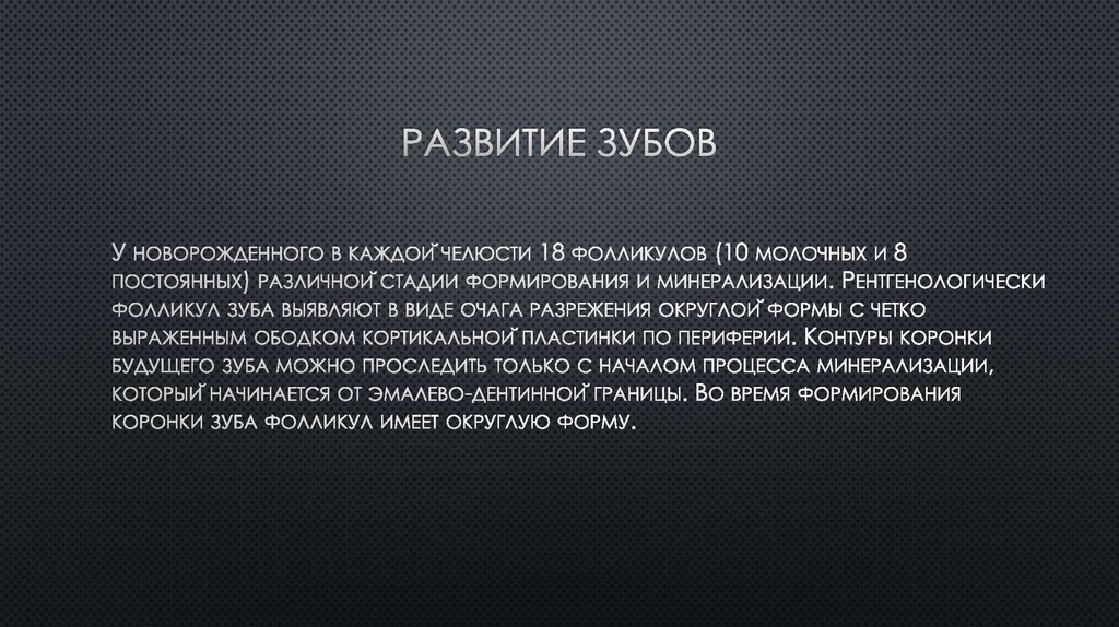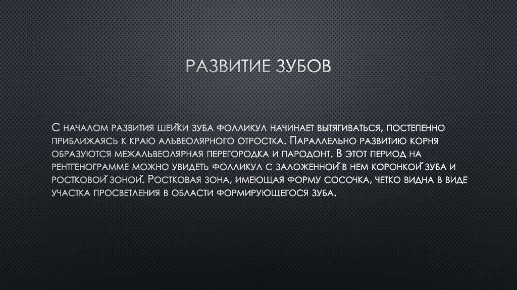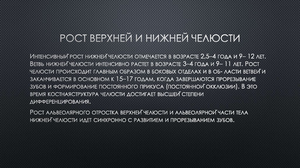 Формирование коронок 6-х зубов, закладка фолликулов 5-х, 7-х зубов. Начало периода активного роста