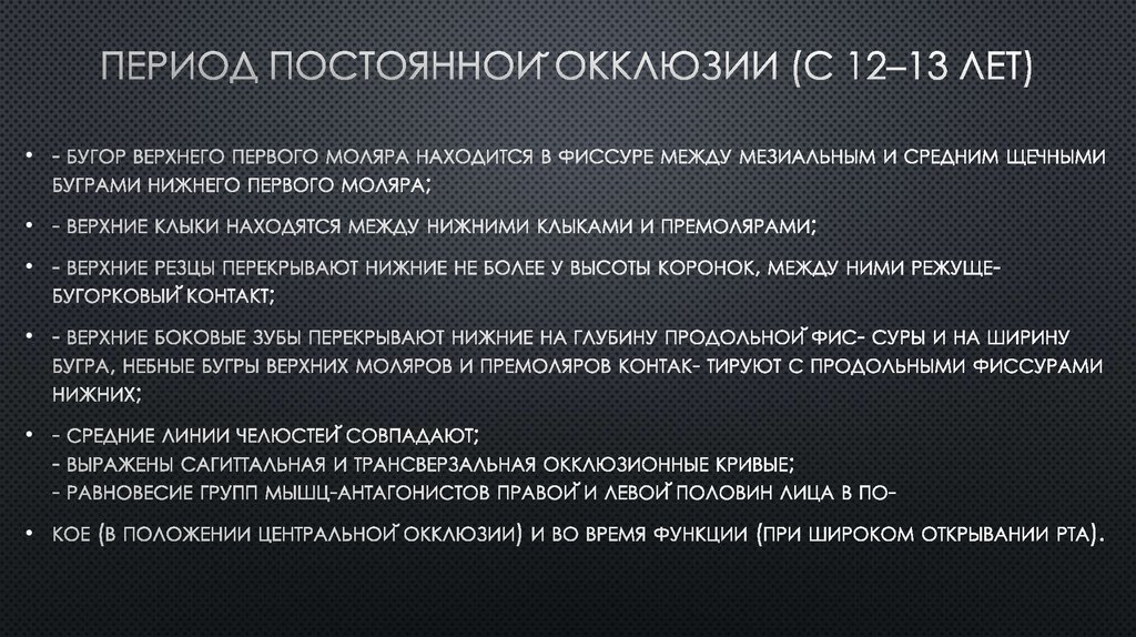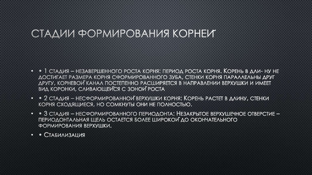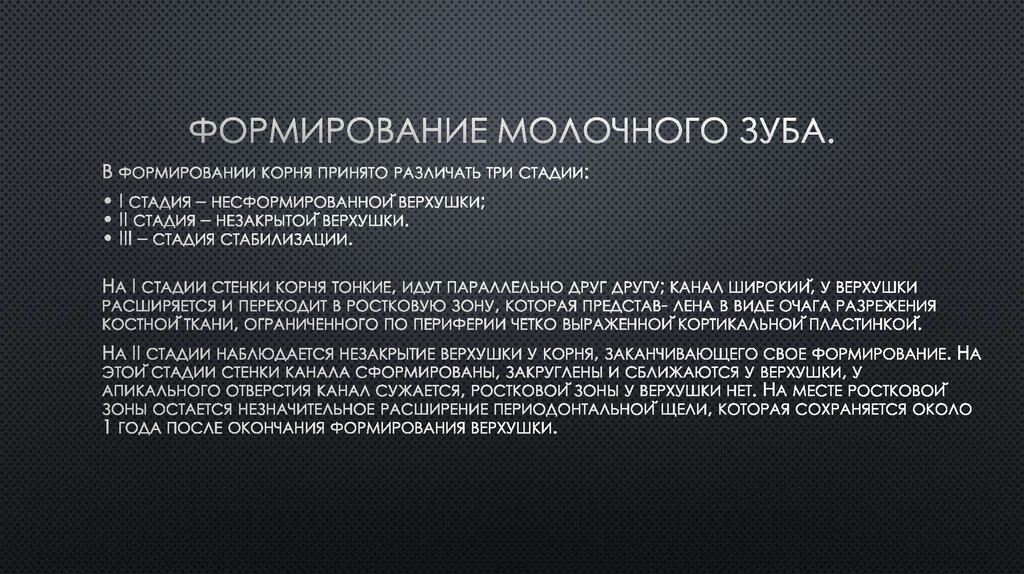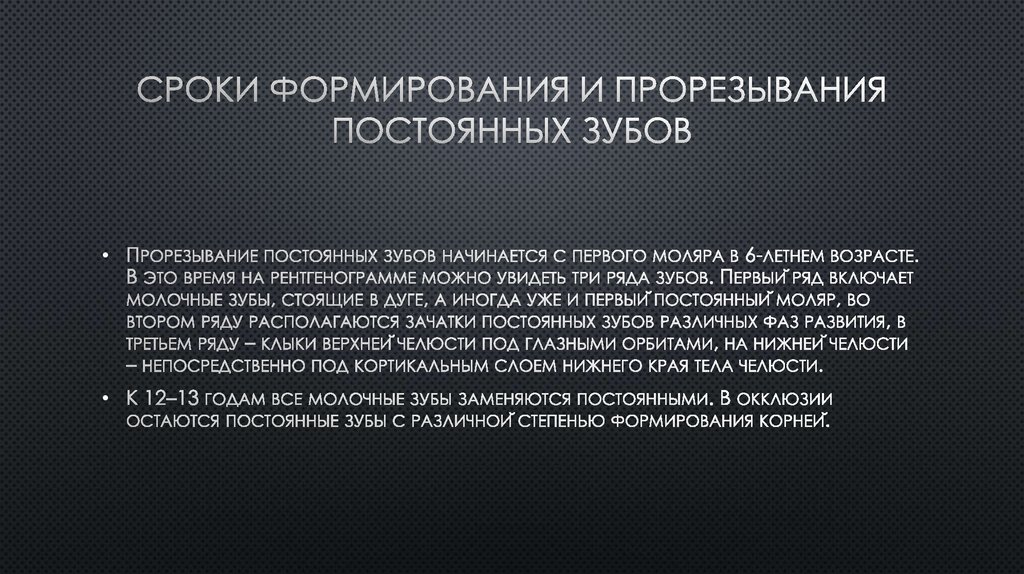 корней III-х зубов, окончание периода активного роста тела нижней челюсти.