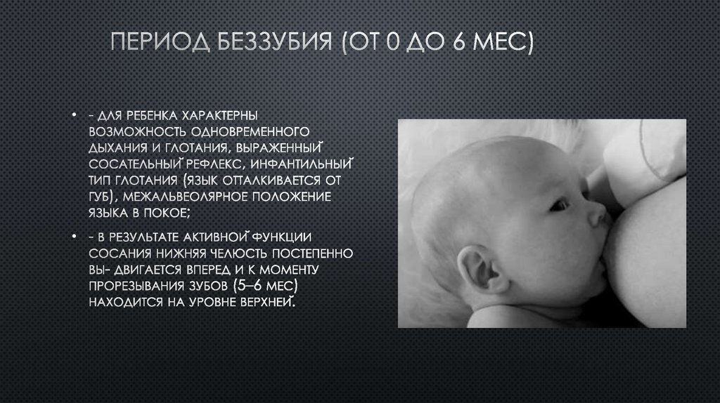 Начало минерализации коронок 5, 7 зубов, начало активного роста нижней челюсти.