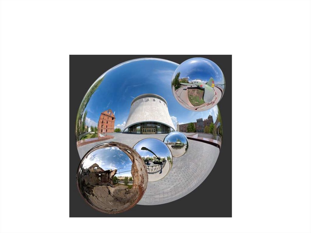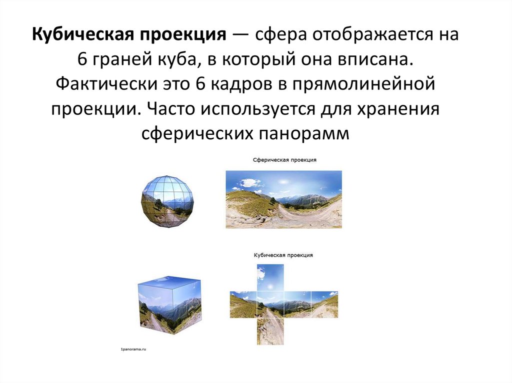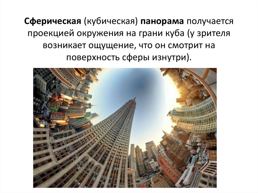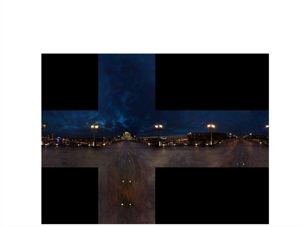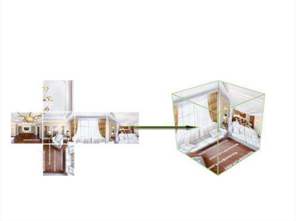 Сферическая (кубическая) панорама получаетсяпроекцией окружения на грани куба (у зрителя