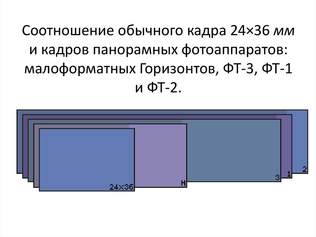 Соотношение обычного кадра 24×36 мми кадров панорамных фотоаппаратов: