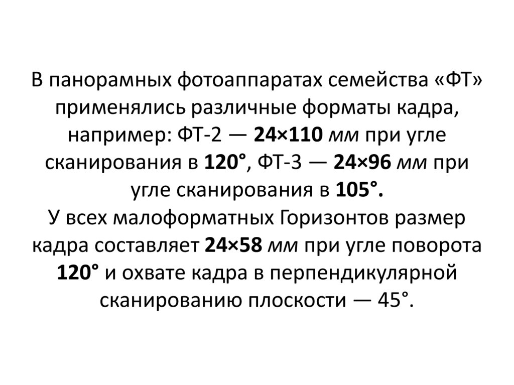 В панорамных фотоаппаратах семейства «ФТ»применялись различные форматы кадра,