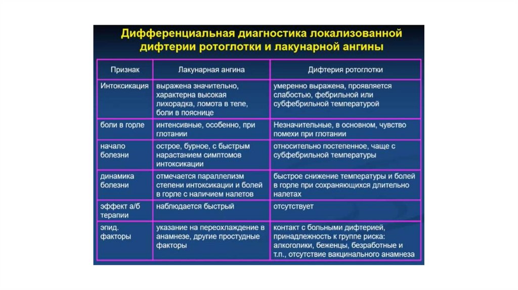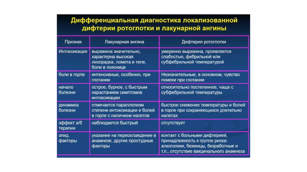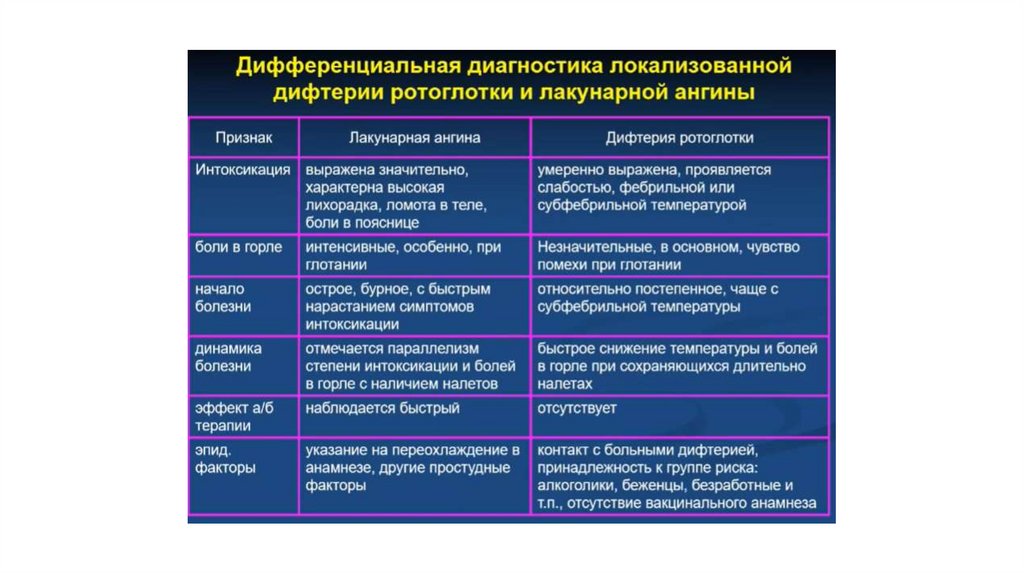 Дифференциальная диагностика дифтерии и тонзиллитов