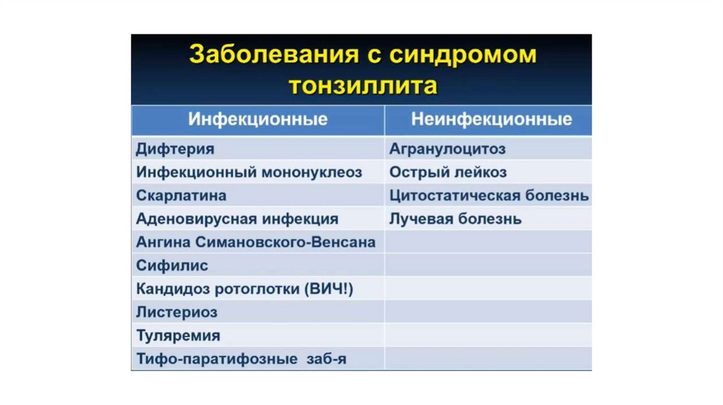 Дифференциальная диагностика болезней с тонзиллитом