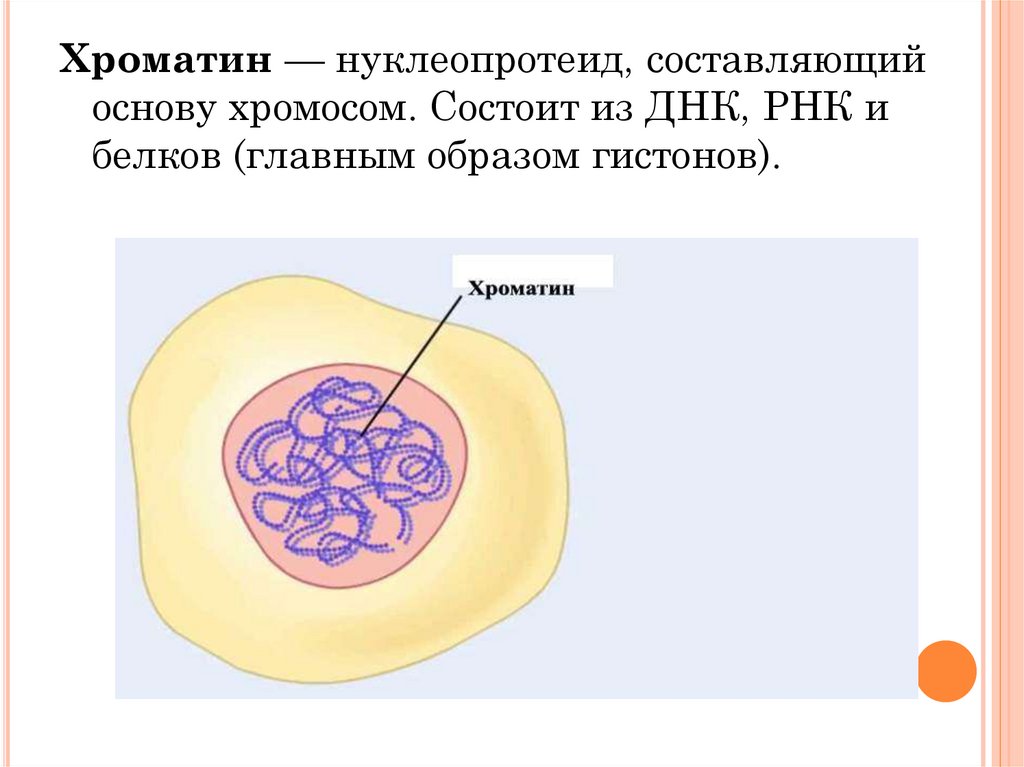 Хроматин — нуклеопротеид, составляющийоснову хромосом. Состоит из ДНК, РНК и