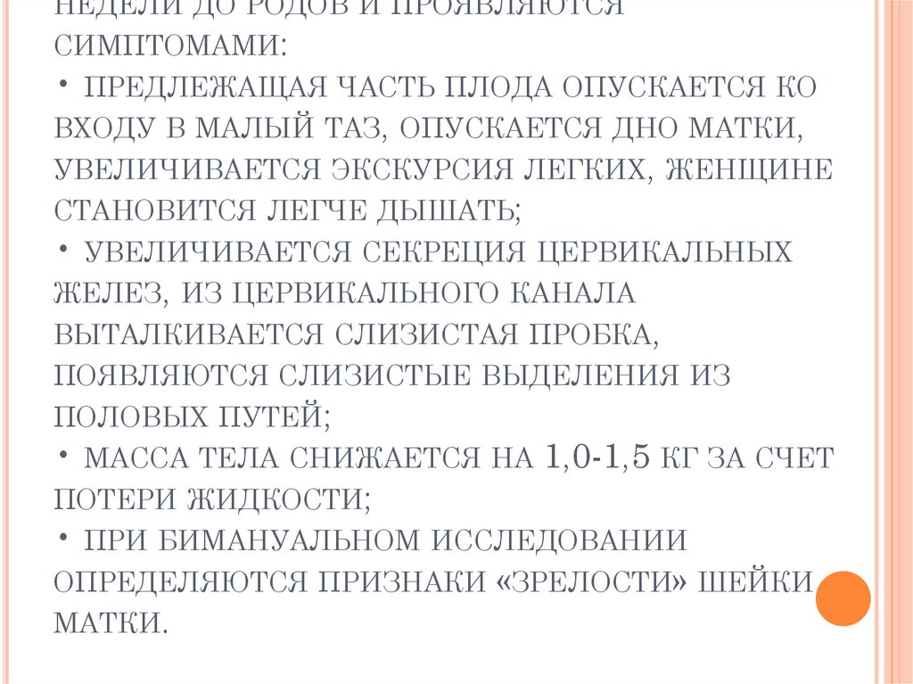 НЕДЕЛИ ДО РОДОВ И ПРОЯВЛЯЮТСЯСИМПТОМАМИ: