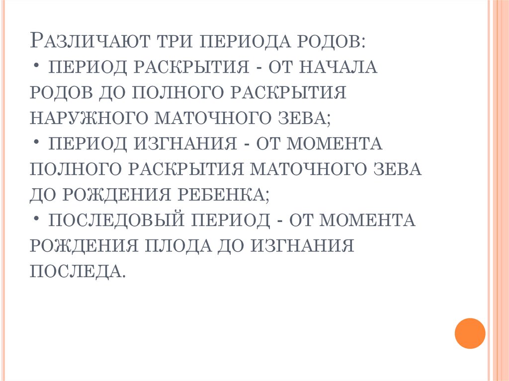 РАЗЛИЧАЮТ ТРИ ПЕРИОДА РОДОВ:• ПЕРИОД РАСКРЫТИЯ - ОТ НАЧАЛА