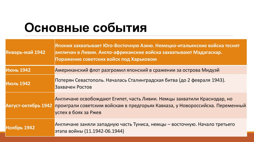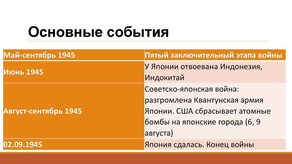 Вторая Мировая Война. Повторение материала прошлого занятия. Тест