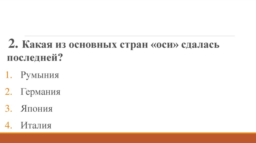 2. Какая из основных стран «оси» сдаласьпоследней?