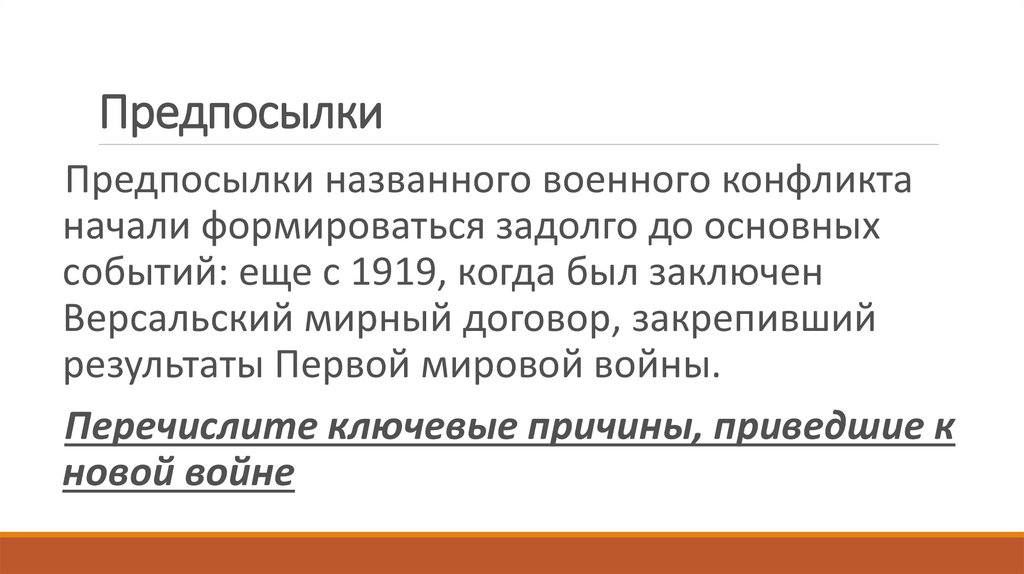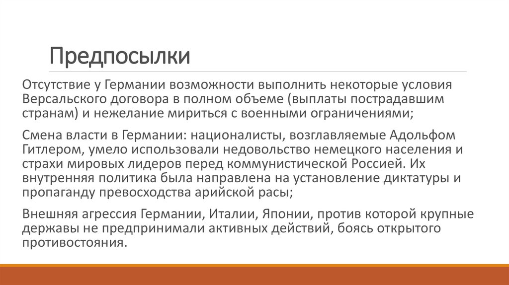 ПредпосылкиОтсутствие у Германии возможности выполнить некоторые условия