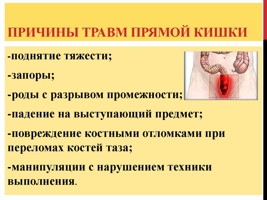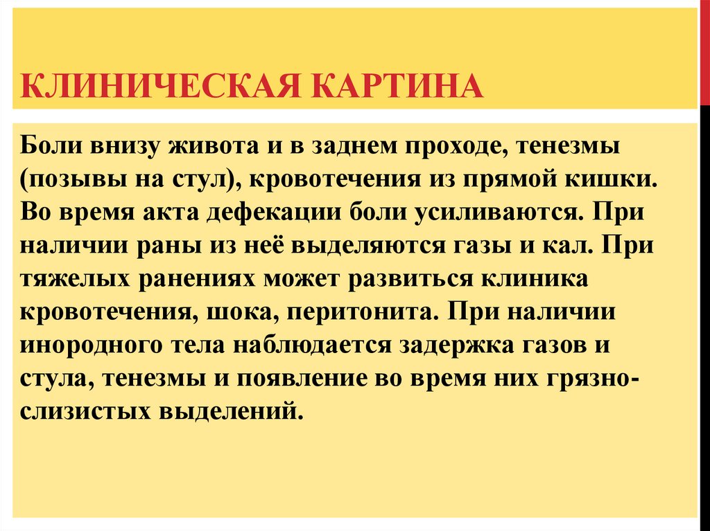Клиническая картина повреждения прямой кишки