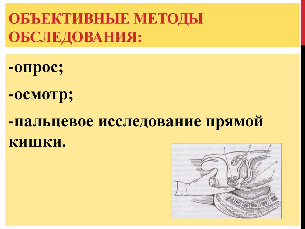 осмотреть дистальный отдел прямой кишки);