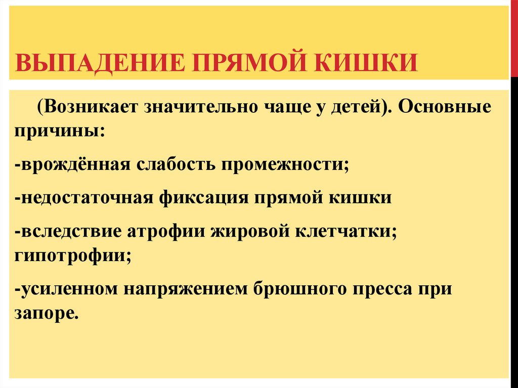ВЫПАДЕНИЕ ПРЯМОЙ КИШКИ(Возникает значительно чаще у детей). Основные