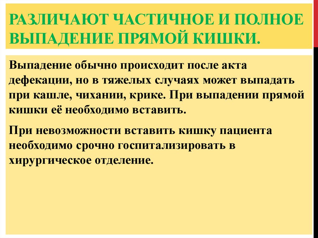 РАЗЛИЧАЮТ ЧАСТИЧНОЕ И ПОЛНОЕВЫПАДЕНИЕ ПРЯМОЙ КИШКИ.