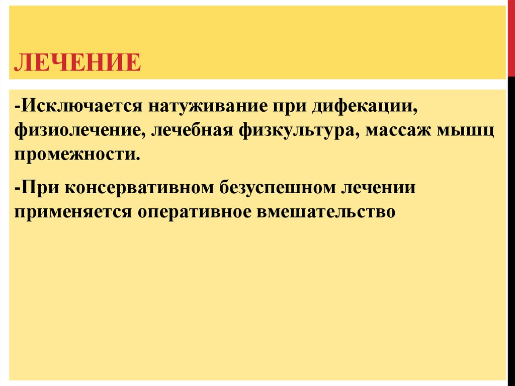 ЛЕЧЕНИЕ-Исключается натуживание при дифекации,